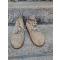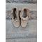 Chaussures en daim beige, semelle caoutchouc collée.