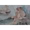 Dessin original Aquarelle Amours à la pêche Putti XIXe siècle