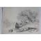 Dessin original à la mine de plomb, Barque, d'après Jean Baptiste Louis Hubert, par Motta