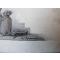 La technique de ces dessins semble être la suivante: Un papier fort et recouvert d'une sorte de plâtre un quadrillage a l'encre est appliqué l'artiste gratte les zones désirées afin d'obtenir le jeu d'ombre il dessine par dessus obtenant ainsi un effet visuel remarquable bon état ( sauf un plis sur l'enseigne) un dessin représente l'association protégeant le commerce et l'industrie l'autre une potence soutenant une enseigne