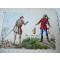 Deux anciens dessins originaux a l'encre rehaussés a l'aquarelle scène d'humour entre un sergent et un chinois et entre un général et un fellah Égyptien belle qualité - bon état
