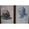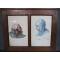 Les aquarelles sont présentées dans un cadre en bois sous verre.