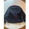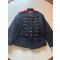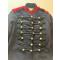 Dolman du 5è Régiment d’Artillerie à cheval, modèle 1872, en drap bleu foncé, collet à chiffres découpés bleu foncé et brides d’épaule en tresses écarlates, fermant devant par sept brandebourgs en tresse et galons plats noirs, boutons demi-grelots étain aux canons croisés et grenade, doublure en toile blanche, avec cachets à l’encre «5è Artie», «-roment Besançon», «4074».
