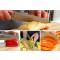 Doppio est un couteau de cuisine à double face en acier japonais. Un côté a une lame régulière et l'autre une lame dentelée tout aussi tranchante vous offrant le couteau de cuisine le plus polyvalent que vous ayez jamais possédé.Doppio va rapidement gagner sa place dans votre cuisine et sera votre couteau préféré pour tout. Il est bien connu que chaque chef a son couteau préféré, celui sur lequel il peut compter et celui qui s'utilise finalement pour tout.Un couteau à double face vous permet de peler, trancher et couper en dés sans changer de lame. Un bord dentelé permet de trancher facilement une tomate parfaitement mûrie, tandis qu'un bord droit peut avoir du mal à pénétrer la peau dure. De même, découper le dessus d'un pain pendant la cuisson pour permettre une expansion est plus facile avec un bord dentelé. Couper les fines herbes en fines pièces donnera de meilleurs résultats avec une règle droite qu'avec une dentelée. Il y a tellement de cas où les deux couteaux peuvent être utiles et Doppio vous offre le meilleur des deux.