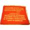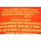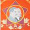 drapeau en tissu rouge avec broderie jaune en excellent état et le portrait central de Vladimir Ilitch Lénine et Joseph Staline sur une face et un texte de propagande russe sur l'autre face