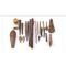 Groupe composé de vingt et un fragments en bois stuqué polychrome relatifs à une maquette de bateau funéraire, comprenant des rames, une quille et un buste masculin, probablement d'un des rameurs.