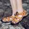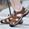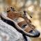 Les chaussures sont jolies, le revêtement extérieur et la languette d'attache sont en cuir, donc plutôt un dessus cuir que sandale en cuir. Le reste est en tissus nylon qui devrait être solide dans le temps. la forme de la semelle est sympa, la partie beige de la semelle aurai gagné en confort si elle avait été en cuir, là c'est en plastique qui a tendance à échauffer le dessous du pied si on fait de longues balades.