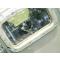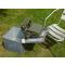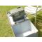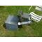 dans sa grande caisse en acier peinture gris bleu marine ,