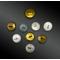 Ensemble de huit boutons d’uniforme de gendarme, cinq sont marqués « A. M & Cie 21 M Paris », un est marqué « A. M & Cie 21 M PARIS », un autre « S. B. C 21 21 GRENOBLE », le dernier « D. M. R21 M PARIS ».