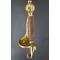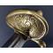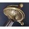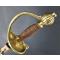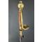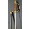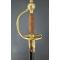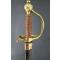 Belle et rare épée d'officier Fusilier d'infanterie à monture de laiton ouvragée, pommeau piriforme godronné en forme de melon, pontat sans poucier gravé d'une grosse fleur de Lys entourée de branches, quillon en forme de goutte, arc de jointure décoré au trait, fusée de bois recouverte de fil de cuivre torsadé et virolé. Lame droite de 81cm à gouttière sur le premier tiers, double tranchant, fines taches d'oxydation. Fourreau bois recouvert de cuir d'époque à deux garniture de laiton, chape à bouton.
