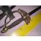 - EPEE D'UNIFORME D'OFFICIER SUPERIEUR epoque REVOLUTIONNAIRE sans FOURREAU. a Clavier FIXE .LAME PLATE a une gouttiere ,le marquage du fabricant est encore visible mais difficilelement .Il reste des decorations dorees sur la lame encore bien visible . AVEC SON FILIGRANE D'ORIGINE.. La garde avec le pommeau empanache a encore des restes de dorure .La garde a du jeu du fait du mauvais etat de la cravatte en tissu qui est endommage. VOIR PHOTO. L'ensemble est a renettoyer ,laisser dans l'etat tel que trouver et vendu dand l'etat..
