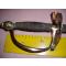 - EPEE D'UNIFORME D'OFFICIER SUPERIEUR epoque REVOLUTIONNAIRE sans FOURREAU. a Clavier FIXE .LAME PLATE a une gouttiere ,le marquage du fabricant est encore visible mais difficilelement .Il reste des decorations dorees sur la lame encore bien visible . AVEC SON FILIGRANE D'ORIGINE.. La garde avec le pommeau empanache a encore des restes de dorure .La garde a du jeu du fait du mauvais etat de la cravatte en tissu qui est endommage. VOIR PHOTO. L'ensemble est a renettoyer ,laisser dans l'etat tel que trouver et vendu dand l'etat..