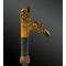 Poignée, appelée ulu, dont le pommeau en andouiller, est creusé et sculptée de motifs floraux ajourés, figurant une tête zoomorphe.