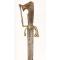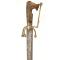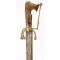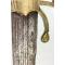 Longue épée arabe (Saïf) du XVIIè, large lame droite à cinq gouttières probablement de fabrication stryrienne, dos plat et contre tranchant à la pointe, poinçons au talon et inscription au centre sur le premier tiers "OENOA" longue de 92.5cm. Poignée en corne blonde avec virole en fer, pommeau en crosse fourni par élargissement de la fusée. Garde en laiton à une branche de garde et trois quillons, croisière gravée d'une fleurette, branche de garde gravée d'une frise de feuillage. Longueur totale 107cm (usures)