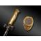 Fourreau en acier de forme conique à bracelet et pontet, bouton de bouterolle sphérique.