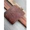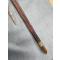 Joli fourreau en cuir noir et rouge dans une patine d’âge, avec gorge centrale sur la face externe. Deux bélières cuir décoré.