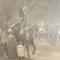 Après partage , vends cette très belle scène de rendez-vous de chasse en forêt de Fontainebleau où Napoléon Bonaparte sur son cheval blanc - se fait faire le rapport avant de lancer la traque . De 1802 à 1814 , L'Empereur participera à plus de 350 chasses et souhaitait ainsi réhabiliter la Vénerie Française décimée par la Terreur . 48 cm X 27,5 cm . TBE . 120 € .