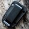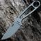 Izula with Kit. 15.88cm overall. 6.68cm gray powder coated 1095HC steel drop point blade. Finger ring. Full tang. Kit includes paracord, split rings, ferro fire starting rod, and whistle. One piece skeletonized construction. Black molded plastic sheath.