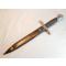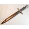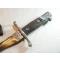 La poignée est munie d’un pommeau oblique avec design de tête d’aigle, qui comporte une rainure en forme de T, sa conception lui permet de s’adapter aux armes de type Mauser M-93. Les plaquettes d’origines en bois quadrillé ou après reconditionnement en plastique, sont fixées à la soie par vis et écrous. La forme droite de la croisière est fortement influencée par la machette d’artillerie M-1907. Toutes les parties métalliques de la poignée avec une petite partie sur le début de la lame sont bronzées