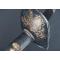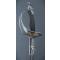 Monture en forme de coquille en argent dans une belle patine, fusée ébène quadrillée à repose pouce, feuilles de laiton doré rivetée à l'enveloppe de garde, belle découpe de feuilles de chênes et de lauriers encerclant un médaillon aux lettres F.R. surmonté d'un bandeau et d'une hache. Lame droite à pointe légèrement relevée, bien marquée au dos. Fourreau de cuir à deux garniture en argent, chape à la grenade enflammée en laiton doré.