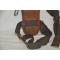 En cuir marron, avec ses sangles et ses mousquetons, attaches et coulants en métal nickelé (traces d'oxydation). Les sangles élastiques sont usagées mais complètes.