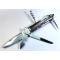 Couteau Makinox 6 pièces tout inox à pompe de blocage et déblocage arrière * Lame polie miroir 115 mm - scie - poinçon - ouvre-boîtes décapsuleur - tire-bouchons - vrillette * Platines en inox - mitres et bélière en inox * Cotes en pointe de corne bovine jaspée de belle qualité * Ouvert 244 mm - fermé 134 mm - 265 g * Marquage MAKINOX sur le talon et A. Pirony sur la lame*