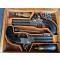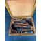 Coffret avec poire à poudre, tournevis, balles en plomb et clé du coffret