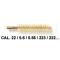 Ecouvillons de nettoyage LAITON au calibre 22. Ces écouvillons conviennent pour le nettoyage des armes des calibres .22 (22 SHORT, 22LR, 22MAG, 22LONG, 22 HORNET, 222REMINGTON, etc...), 5.6, 5.56 (223REMINGTON, 5.56x45 NATO, etc... ) mais aussi les armes à air calibre 5,5.