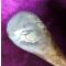 Tear Vile, Light Blue Glass, old circular label partially torn off, piece has a golden patina