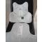Cette dernière estune plaque bombé idéal pour femme, le revetement tissus blanc est déchiré comme ont peut le voir sur la derniere photo mais la protection noir sur le kevlar est toujours intact