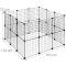 Enclos grille en un clin d'oeil Dimensions avec 24 panneaux H x L x P : env. 72 x 110 x 110 cm Écart entre les barreaux du grillage : env. 4 cm Pèse env. 5,4 kg En métal & plastique En noir Pièces incluses de l'enclos avec24 panneaux Panneaux grille : 24 pièces, env. 35 x 35 cm chacune Connexions enfichables : 46 unités Revêtement en caoutchouc antidérapant : 24 pièces Attaches câble : 46 unités Marteau en bois : 1 pièce