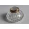 Encrier Must de Cartier en cristal soufflé de forme lentille à décor godron bouchon cristal finition sablé sertissage au trois anneaux symbole a marque Cartier gravée à l'intérieur du bouchon bon état