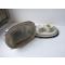 Ancien et rare encrier couvert avec godet et sablier d'origine d'époque XIXe siècle manufacture Allemande bon état (sauf un pied manquant et une ébréchure sur la base, voir photos)