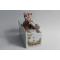 Encrier en faïence à décor polychrome, scène de bord de mer avec un tiroir, deux godets (l'un pour le sable, l'autre pour l'encre) et un binet pour placer une bougie surmonté d'un livre ouvert avec inscription : "Offert à Monseigneur le Dauphin de France" marque bleue dessous, Armoiries du Royaume de France, voir photos d'époque XVIIIe siècle modèle similaire présenté au Musée des beaux arts et d'histoire naturelle de Chateaudun (ancienne collection Salce-Fourgheon) bon état
