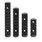 Disponibles en quatre longueurs différentes - 11 slots, 9 slots, 7 slots et 5 slots - ces rails vous permettent de positionner précisément la quantité de rail nécessaire pour chaque accessoire. Cela garantit une personnalisation optimale de votre configuration sans ajout excessif de poids ni de volume inutile.