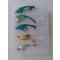 Ensemble de 5 leurres de pêche en alliage de zinc avec boite. Neufs.