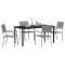 Ensemble de 5 meubles de jardin en poly rotin grisCet ensemble de quatre chaises de salle à manger de jardin allie style moderne et praticité, idéal pour n'importe quel espace extérieur. Le poly rattan gris stylé est beau et facile à entretenir, tandis que le cadre en acier robuste garantit que tu peux profiter de tes repas en extérieur avec élégance. Apparence Stylée : Le design gris chic fonctionne avec n'importe quelle déco extérieure, créant une ambiance sympa pour les rassemblements. La texture n'est pas seulement belle mais aussi confortable, parfait pour des repas tranquilles avec des amis et la famille. Résistance aux Intempéries : Fabriquées en PE rattan, ces chaises sont solides et résistent bien au temps, donc elles peuvent être utilisées à l'extérieur toute l'année, sans craindre le soleil ou la pluie. Entretien Facile : Le matériau synthétique se nettoie facilement ; il suffit de l'éponger avec de l'eau chaude pour qu'il reste beau. Tu vas adorer la simplicité de l'entretien. Caractéristique Empilable : Ces chaises sont conçues pour s'empiler, économisant de l'espace quand tu les ranges, idéal pour les grands rassemblements ou les petites terrasses. Elles te donnent flexibilité et facilité pour organiser ton extérieur. Assise Confortable : Avec une hauteur de siège de 42 cm et une largeur confortable, ces chaises offrent de bonnes places pour dîner ou se reposer dans ton jardin ou sur ta terrasse. Leur conception bien pensée convient aussi bien aux adultes qu'aux enfants. Maximum 110 kg par siège.