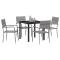 Ensemble de 5 meubles de jardin en poly rotin grisCet ensemble de quatre chaises de salle à manger de jardin allie style moderne et praticité pour tout espace extérieur. Le poly rotin gris chic et simple à entretenir ressemble à du vrai rotin, alors que le cadre en acier robuste assure durabilité et confort à long terme pour les repas à l'extérieur dans n'importe quel cadre. Apparence stylée : Le design gris chic se marie avec n'importe quel décor extérieur, créant une ambiance accueillante pour tes retrouvailles. La texture lisse a de l'allure et est confortable, parfaite pour des repas décontractés en famille ou entre amis. Résistance aux intempéries : Faits en poly rotin PE, ces chaises sont vraiment robustes et prêts à affronter différents temps, tu peux donc les laisser dehors toute l'année sans trop te soucier du soleil ou de la pluie. Entretien facile : Le matériau synthétique se nettoie facilement, un coup d'eau chaude et ça reste top. Cela rend leur usage régulier sans le stress d'un entretien lourd. Fonction d'empilage : Conçues pour s'empiler proprement, ces chaises font gagner un espace précieux quand elles sont rangées, les rendant parfaites pour les petits patios ou balcons. Leur capacité d'empilage te permet de configurer ton espace extérieur comme tu veux. Sièges confortables : Avec une hauteur de siège de 42 cm et des dimensions généreuses, ces chaises offrent un confort parfait pour savourer des repas ou se détendre dans ton jardin ou sur ton patio. Le design réfléchi est adapté aux adultes comme aux enfants. Maximum 110 kg par siège.
