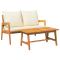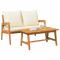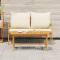 Ensemble Bistro 2 pièces avec coussins en bois massif d'acaciaCet ensemble bistro, avec une jolie table basse et un banc confortable, est fait en bois d'acacia massif et est parfait pour dehors. Son style moderne et ses coussins moelleux en font un super ajout à n'importe quel balcon ou patio--idéal pour profiter d'un repas tranquille ou d'une tasse de café avec des amis. Construction de Haute Qualité : Le bois d'acacia massif assure durabilité, et sa finition huilée protège contre l'humidité. Astuce Moderne : Son design cool et ses coussins crème blanche en font un choix stylé pour les espaces extérieurs modernes. Confort et Praticité : Les coussins sont fait pour des soirées longues dehors, fixés en place avec des sangles. Stabilité Assurée : Le tréteau en H intégré renforce la table tout en ajoutant du style au design. Entretien Facile : Il suffit de l'essuyer avec un chiffon sec et de ranger les coussins à l'intérieur quand il fait moche.