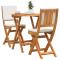 Ensemble Bistro de 3 Pièces avec Coussins en Bois d'Acacia MassifCe set bistro pliable allie style et praticité, parfait pour les petits espaces extérieurs comme les balcons ou patios. En bois massif d'Acacia, il apporte une ambiance chaleureuse et chic à vos repas tout en étant solide et stable pour un usage quotidien. Conception gain de place: Cet ensemble se plie facilement pour un rangement compact quand vous ne l'utilisez pas. Super pour les petits espaces, il est simple à ranger quand vous avez besoin de plus de place. Sièges confortables: Les chaises sont avec des coussins crème, parfaits pour des repas tranquilles ou des pauses café. Apparence élégante: Son design moderne etfinishes lisses, avec une couleur bois naturel, améliorent encore votre espace extérieur. Matériaux durables: Fait en bois d'Acacia robuste et des matériaux résistants aux intempéries comme le poly rattan synthétique, cet ensemble bistro est fait pour durer, ce qui vous permet de profiter de vos repas en extérieur année après année. Facilité d'entretien: La surface vernie protège le bois des taches, et les coussins peuvent être enlevés pour un nettoyage facile, rendant l'entretien vraiment facile.