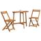 Ensemble Bistro Pliant 3 Pièces en Bois d'Acacia MassifL'Ensemble Bistro Pliant a un design moderne parfait pour différents espaces extérieurs. Idéal pour un balcon, cet ensemble en bois d'acacia massif combine style et fonctionnalité pour un dîner ou un moment détente dehors. Design Élégant : Les lignes épurées et la finition bois naturel apportent une ambiance chaleureuse, parfaite pour passer du temps entre amis ou partager des repas en toute intimité. Cet ensemble bistro embellit n'importe quel espace extérieur. Rangement Compact : Les chaises se plient sans effort, idéal pour le rangement quand tu ne t'en sers pas. Super pratique pour les petits espaces extérieurs. Matériaux de Qualité : Fait en bois d'acacia massif, cet ensemble est robuste et résistant aux conditions extérieures. Assise Confortable : Les chaises sans coussins ont un look épuré tout en restant confortables pour les repas dehors. Entretien Facile : Les surfaces résistantes à l'eau nécessitent peu d'entretien. Un passage de chiffon humide suffit pour le garder au frais.