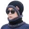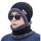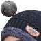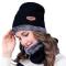 Ensemble Bonnet + Écharpe Hiver Homme/Femme Tricot Acrylique Doublé Polaire Noir Taille Unique