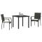 Ensemble de Chaises de Jardin 3 pcs Noir 80 x 80 x 73 cmCet ensemble de mobilier de jardin incarne le style moderne tout en étant super pratique. Idéal pour les jardins et les terrasses, il apporte un charme qui s'adapte à tous les espaces extérieurs. La finition tissée ajoute un style unique qui se marie bien avec la nature, parfait pour des retrouvailles en plein air. Conçu pour le confort et la durabilité, il rend vos moments avec la famille ou les amis encore plus agréables. Matériau en Poly Rattan : Cet ensemble est fait d'un poly rattan de qualité, reconnu pour sa robustesse et son toucher agréable. Il résiste à tous types de temps et reste beau longtemps. Cadre en Acier Recouvert de Poudre : Chaque pièce repose sur un solide cadre en acier avec une finition en poudre qui est jolie et le protège de la rouille et de l'usure. Coussins Confortables : L'ensemble vient avec des coussins d'extérieur en tissu résistant aux intempéries, super confortables. Ils ont des zips pour un retrait et un nettoyage simples, ce qui les rend pratiques à entretenir. Accoudoirs et Dossiers Ergonomiques : Avec des dossiers confortables et des accoudoirs plats en poly rattan, ce design vous aide à vous détendre tout en profitant du beau temps. Entretien Simple : Garder ce meuble en bon état est facile. Utilisez simplement des housses de protection quand vous ne l'utilisez pas, et nettoyez-le délicatement pour qu'il reste frais. Maximum 110 kg par siège.