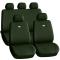 Ensemble complet de housses de siège voiture au design chasse, doté d'une broderie sanglier. Protection universelle pour sièges avant et arrière, inclus 5 appuie-têtes. Facile à installer avec fixation élastique, en tissu extensible avec revers moussé pour un confort maximal. Couleur vert foncé.