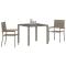 Ensemble de Salle à Manger de Jardin 3 Pièces Gris Poly RattanCet ensemble de salle à manger de jardin allie parfaitement style moderne et praticité. Avec son design épuré et sa belle finition grise, c'est idéal pour des repas en extérieur. Design Moderne: Les lignes épurées et le look contemporain de cet ensemble mettent en valeur tout espace extérieur. La couleur grise se marie facilement avec ton jardin ou ta terrasse. Matériaux Durables: Confectionné avec des matériaux résistants aux UV, cet ensemble est conçu pour affronter différentes conditions climatiques, tout en gardant son côté esthétique. Sièges Confortables: Chaque chaise est équipée de coussins doux, parfaits pour des repas prolongés et pour se détendre dehors, pour que tu puisses passer des moments agréables avec tes amis et ta famille. Utilisation Polyvalente: Que ce soit pour un barbecue sur le balcon ou un thé chic dans le jardin, cet ensemble est fait pour toutes les occasions, un véritable indispensable pour la vie en extérieur. Facilité d'Entretien: Un simple coup de chiffon humide suffit pour le garder au top. Utilise une housse imperméable quand il n'est pas utilisé pour préserver son bel aspect.