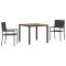 Ensemble de Salle à Manger de Jardin 3 Pièces Poly Rattan Noir vidaXLCet ensemble de salle à manger de jardin est un bon mix de style et de praticité, idéal pour des repas dehors. Avec son look moderne en poly rattan noir et son plateau en bois, il va rendre ton balcon ou jardin parfait pour les repas, les rassemblements ou des moments de pause café tranquille. Design Moderne: Cet ensemble est élégant et stylé, parfait pour tout aménagement extérieur, ce qui en fait un choix génial pour les patios, jardins ou balcons. Les chaises rembourrées augmentent le confort, te permettant de profiter de longs repas avec tes amis et ta famille. Matériaux Tendance: Fabriqué avec des matériaux de qualité, résistants aux UV, cet ensemble garde son allure et sa robustesse au soleil, te garantissant des années d'utilisation fiable. Taille Compacte: Idéal pour les petits espaces, cet ensemble se place facilement dans n'importe quelle zone extérieure, parfait pour ceux qui veulent dîner dehors sans trop d'espace. Entretien Simple: Les matériaux sont faciles à nettoyer, maintenant ton espace de salle à manger extérieur frais et accueillant toute l'année. Sièges Confortables: Chaque chaise est remplie de coussins, pensée pour le confort, idéale pour des moments prolongés dehors. Supporte jusqu'à 110 kg par siège, parfait pour différents invités.