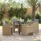 Ensemble de Salle à Manger de Jardin 5 Pièces avec Coussins Beiges en Rotin SynthétiqueCet ensemble repas de jardin 5 pièces a un design chic en poly rotin beige et est fait pour durer, parfait pour embellir votre espace extérieur. Il comprend une table solide et quatre chaises confortables, toutes avec des coussins résistants aux intempéries, créant un lieu accueillant pour les repas et les retrouvailles. Cadre en acier solide : Fait en acier enduit de poudre, ce cadre offre stabilité et durabilité tout en restant stylé même par mauvais temps. Coussins confortables : Les coussins doux et amovibles de chaque chaise sont en polyester, parfaits pour se détendre longtemps dehors. Chaises pliantes : Faciles à plier et à ranger, super pratiques pour les événements extérieurs ou à mettre de côté après la saison. Table avec plateau stylé : Le plateau en métal noir est chic et facile à entretenir, parfait pour les repas tout en étant résistant aux rayures et aux éclaboussures. Ensemble multi-usage : Idéal pour toutes les occasions en extérieur, que ce soit pour dîner, s'amuser entre amis ou siroter un café tranquille. Maximum 110 kg par siège.