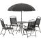 ENSEMBLE COMPLET DE JARDIN : ensemble bistro de jardin complet composé de 4 chaises pliables, d'une table ronde et d'un parasol