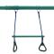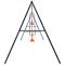 Cet ensemble de balançoire se compose d'un cadre en A en acier robuste avec 2 sièges de balançoire, 2 anneaux de gymnastique et une balançoire face-à-face.
