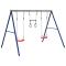 Ensemble de balançoire d'extérieur avec balançoires et trapèzeTransformez votre jardin en aire de jeux pour vos enfants avec cet ensemble de balançoire d'extérieur ! Centre d'activités amusantes : cet ensemble de balançoire pour enfants comprend 2 options de jeu différentes avec deux sièges de balançoire et une barre de trapèze avec des anneaux de gymnastique. Ainsi, les enfants peuvent se balancer et grimper à leur guise. Cadre en métal très résistant : ce cadre de balançoire est fabriqué en tubes d'acier peints qui sont résistants à la rouille, exceptionnellement robustes et résistants à la déformation, assurant ainsi une excellente stabilité et durabilité. La structure en forme de A offre un soutien solide sans aucune oscillation. Siège de balançoire réglable : cette balançoire de jardin est conçue pour grandir avec votre enfant, et convient donc aussi bien aux tout-petits qu'aux enfants en pleine croissance. En réglant la longueur de la corde, vous pouvez facilement vous adapter aux besoins changeants de votre enfant. Jouet d'extérieur multifonctionnel pour enfants : cette balançoire de jardin aide les enfants à améliorer leur équilibre, leur coordination, leur agilité, leur force et leur endurance, tout en leur offrant diverses possibilités de jouer et de faire de l'exercice. Utilisations variées : ce cadre de balançoire peut être placé dans divers endroits tels que les jardins, les arrière-cours, les crèches, les aires de jeux, etc. Bon à savoir : Pour des raisons de sécurité, veillez à ce que chaque balançoire ne puisse accueillir qu'un seul enfant à la fois. Avertissement. Ne convient pas aux enfants de moins de 3 ans. Usage domestique uniquement. GPSR